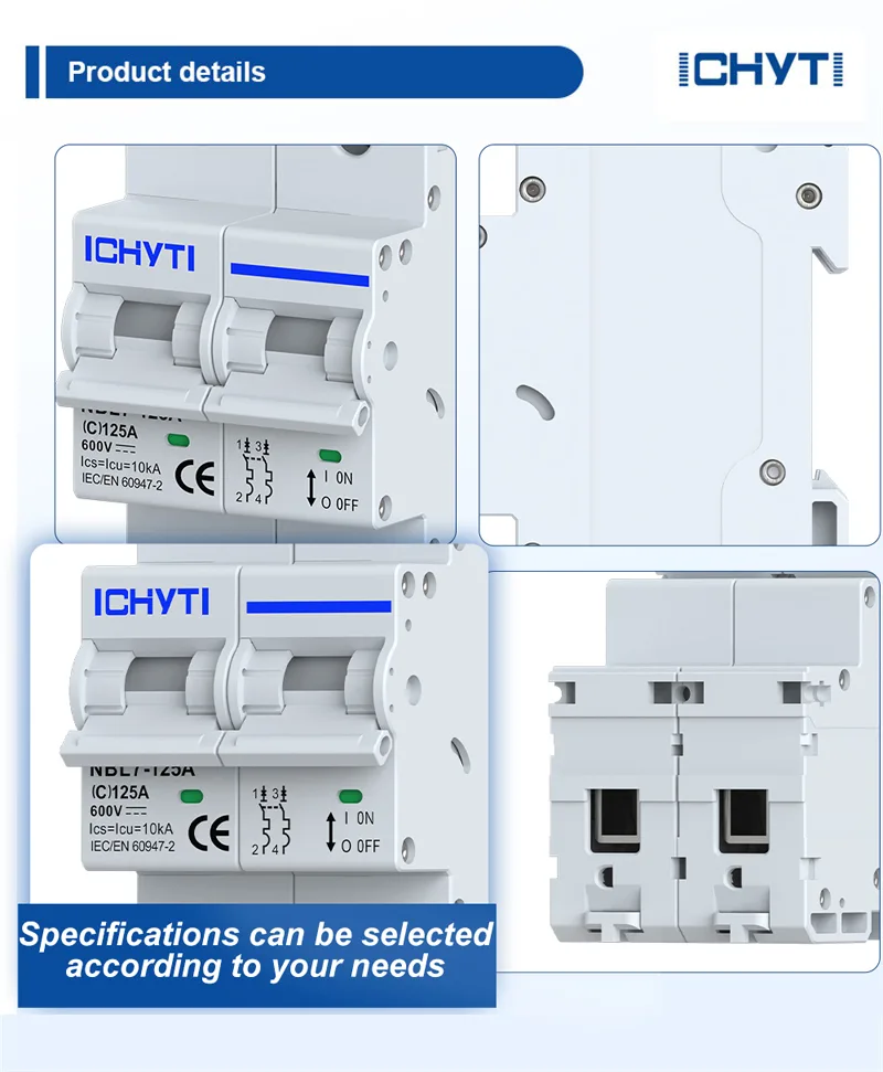 সৌর শক্তি সঞ্চয়স্থান এবং নতুন পরিকাঠামোর ক্ষেত্রে গ্রাহকদের আবেদনের প্রয়োজনে, ICHYTI প্রস্তুতকারক একটি নতুন NBL7-125A নন পোলারিটি 125A DC MCB চালু করেছে৷ এই DC সার্কিট ব্রেকারটি DC1000V/DC600V এর রেটেড অপারেটিং ভোল্টেজ এবং 80A থেকে 125A রেট করা বর্তমান রেঞ্জ সহ সার্কিট পরিস্থিতির জন্য উপযুক্ত। এটি ডিসি সিস্টেমের জন্য শর্ট-সার্কিট সুরক্ষা এবং ওভারলোড সুরক্ষা ফাংশন অর্জন করতে পারে, পাশাপাশি সার্কিট বিচ্ছিন্নতা এবং নিয়ন্ত্রণ হিসাবেও কাজ করে।